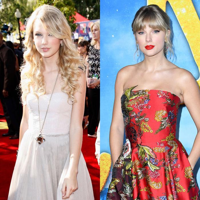 霉霉在青少年时期穿着米白色连衣裙和长卷发,但在2019年时,她在“猫”首映式上穿着红色丝质花卉图案连衣裙。这两种造型展示了她自2006年16岁出道以来,到2020年这14年间,她在音乐界占据的重要地位。