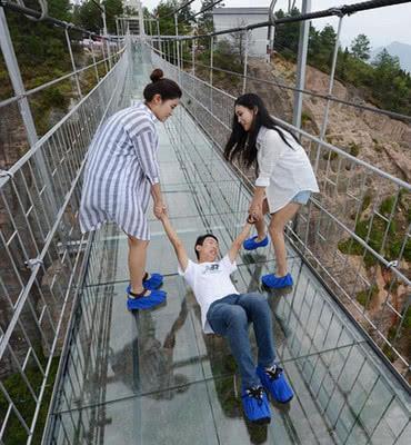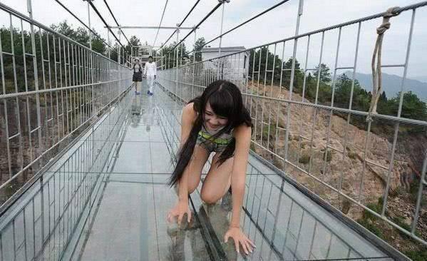 不管是走到哪都可以玩心跳了,不得不说这个玻璃栈道还是比较刺激的,所以网上才会有各种各样关于走玻璃栈道的搞笑视频。