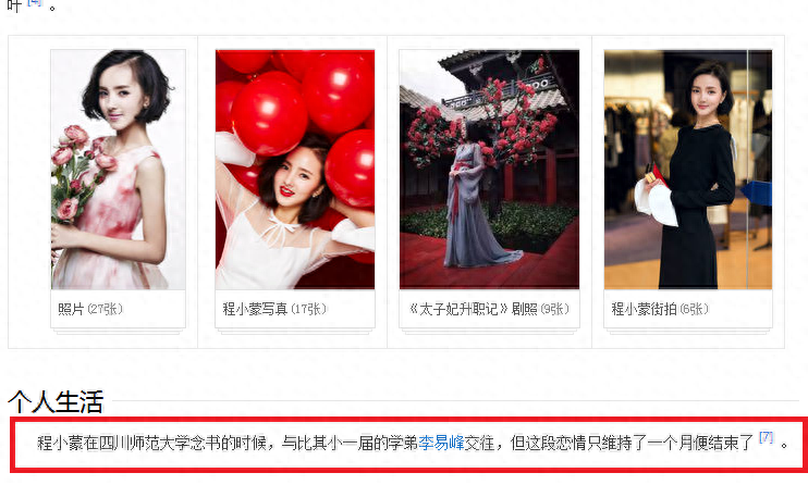 并且,在程小蒙的官方资料中,也表明她曾是李易峰的大学女友!