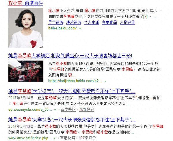 另外小扒去搜了一下这个程小蒙,结果她的名字自动捆绑到李易峰三个字。。。。
