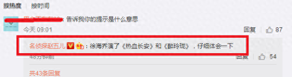 所以,按照他的提示,也就是说妹子是圈内人,跟徐海乔合作过?小扒去扒了一下徐海乔演的《醉玲珑》和《热血长安》,从两部剧中的演员名单中,没有找到重合的女演员。