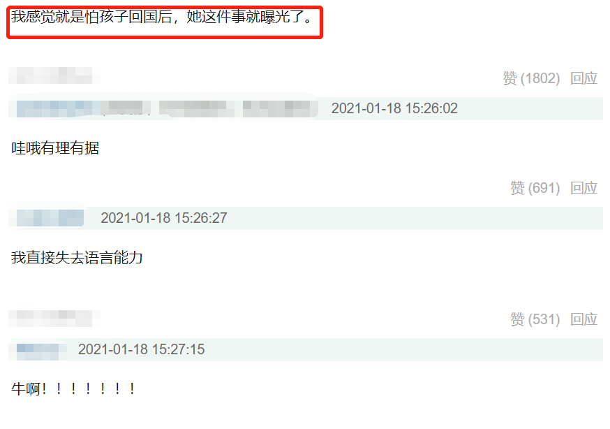 不过网友对于张恒突然爆料也感到有些迷惑,孩子已经一岁多了,为什么现在才爆料呢?有网友分析是因为张恒一直想带着孩子回国,但郑爽迟迟不肯配合,在那边滞留了一年多,现在又恰逢要过年了,张恒只能鱼死网破爆料,逼迫郑爽配合。