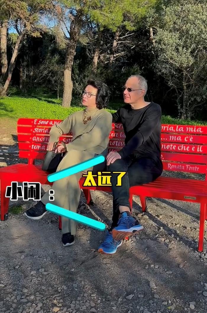 夫妻俩坐在公园的长椅上悠闲地晒着太阳,画面看起来特别温馨。