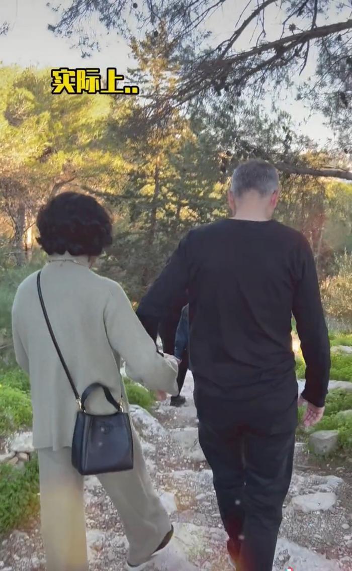 画面中,54岁的金星打扮得十分朴素,穿着简单的针织套装,搭配黑色的运动鞋。一旁的外籍丈夫汉斯也和金星一样,身穿简约舒适的黑色上衣以及蓝色运动鞋。