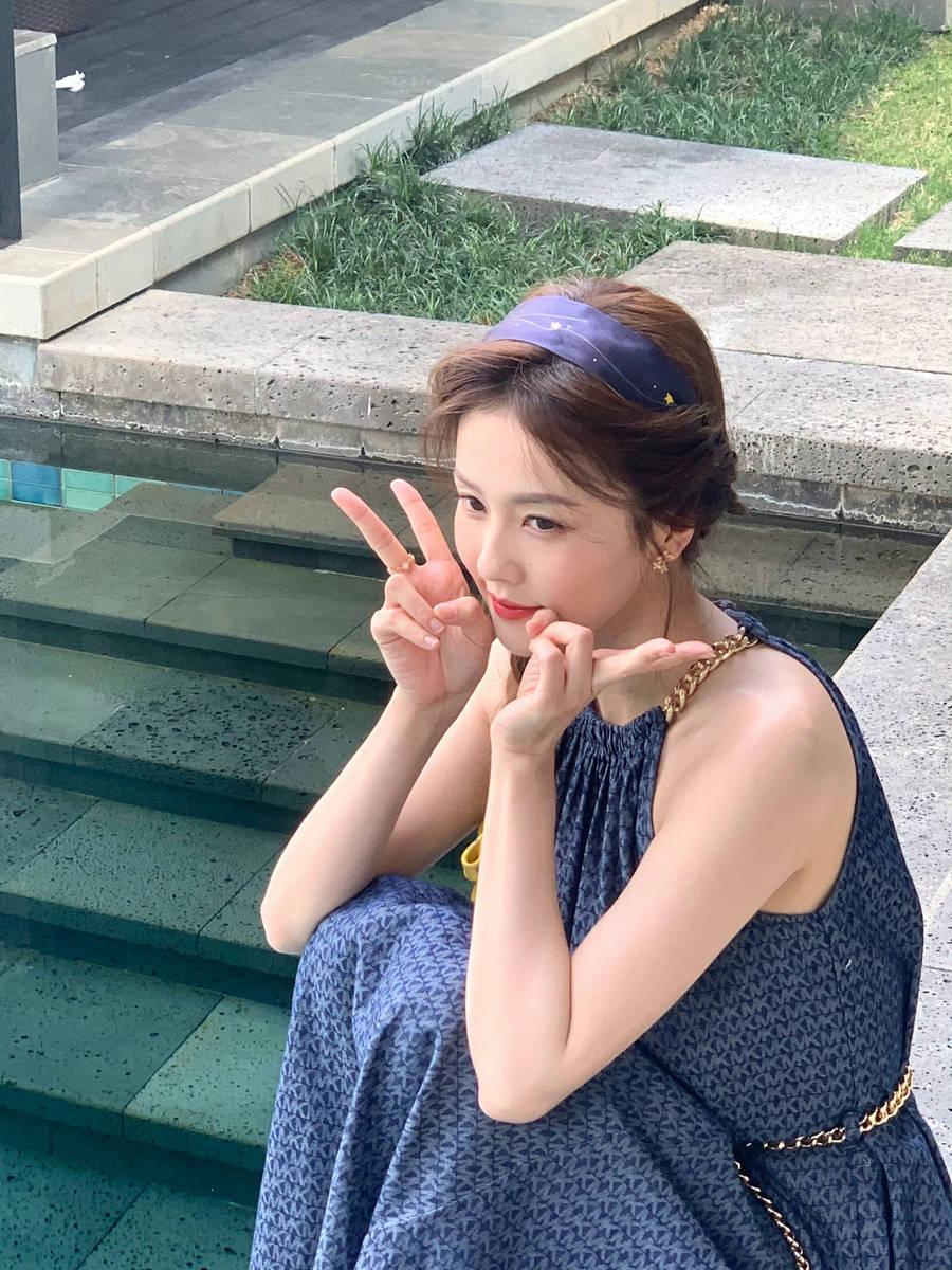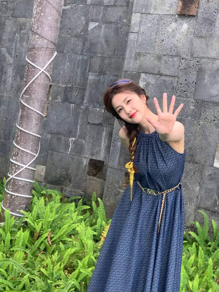 白鹿穿挂脖长裙有气质 比剪刀手卖萌