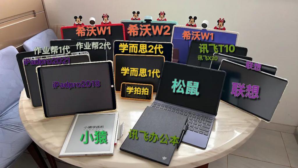 郭妈妈首先买的是主打 AI 智能的科大讯飞,后来的 3 年时间里又陆续买了松鼠、希沃、小猿学练机、作业帮、学而思等。