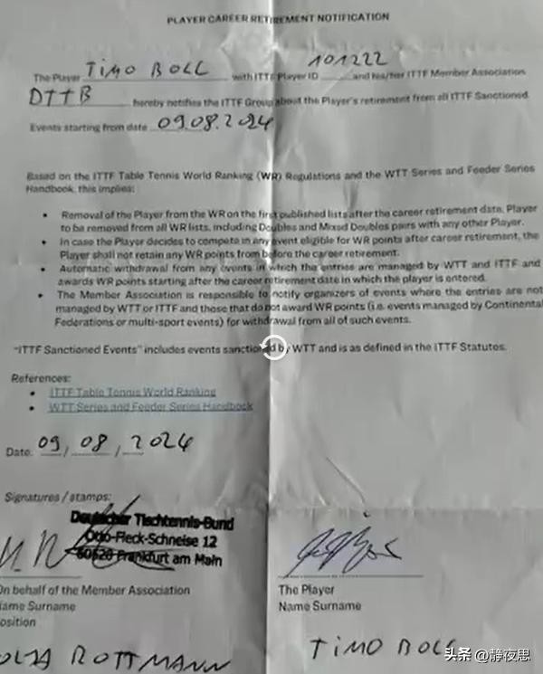 不过,几家欢乐几家愁,德国名将波尔,居然宣布退出WTT赛事,还签了退赛协议,2024年8月13日开始 波尔将没有世界排名了。这不仅意味着,他的大名将在国际乒联排名榜上消失,积分直接归零,也代表着一代乒坛传奇就这样落幕了!