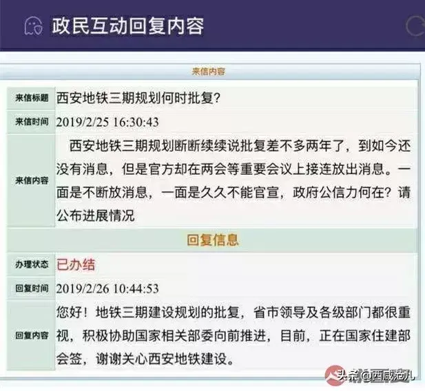 “西安地铁三期批复了吗?”这是一年以来悦君后台收到的频次最高的问题。2月26日,省发改委最新回复网友:“目前,西安地铁三期建设规划正在国家住建部会签,省市各级部门正积极协助国家相关部委向前推进”。