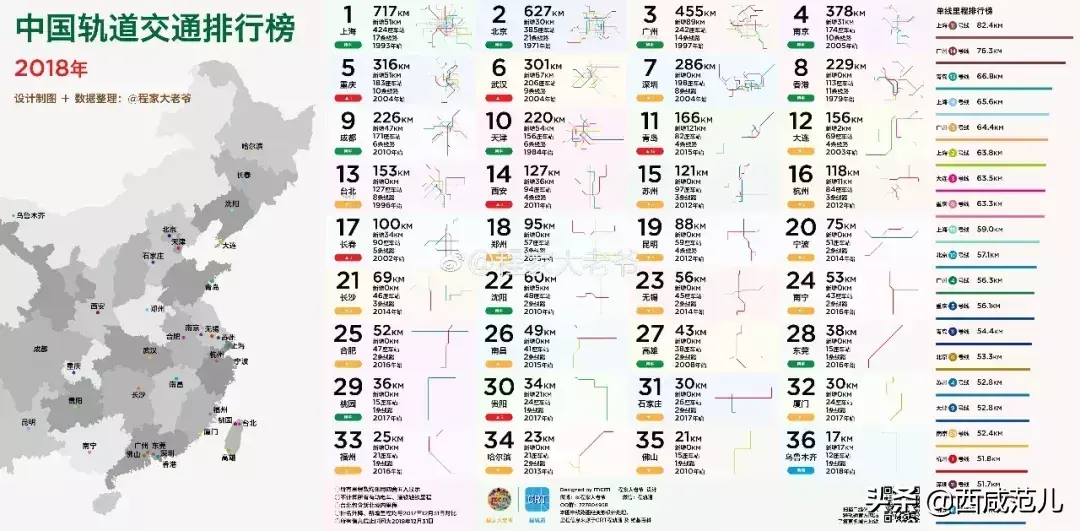 2018中国城市轨道交通排行榜 图/程家大老爷