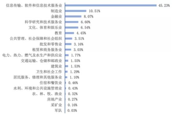 杭州电子科技大学主要流向领域为信息传输、软件和信息技术服务业,占比高达45%。