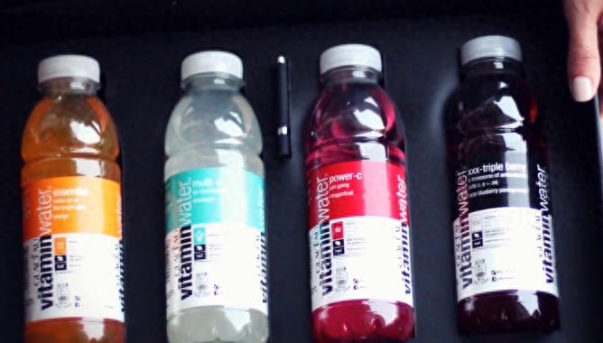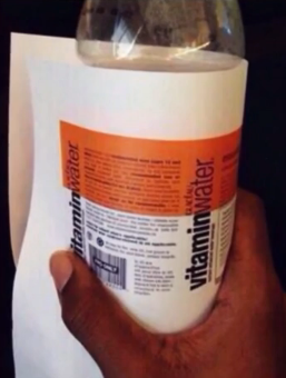 将饮料的标签撕下来,扫描进电脑,用PS将饮料标签对应的文字替换成小抄