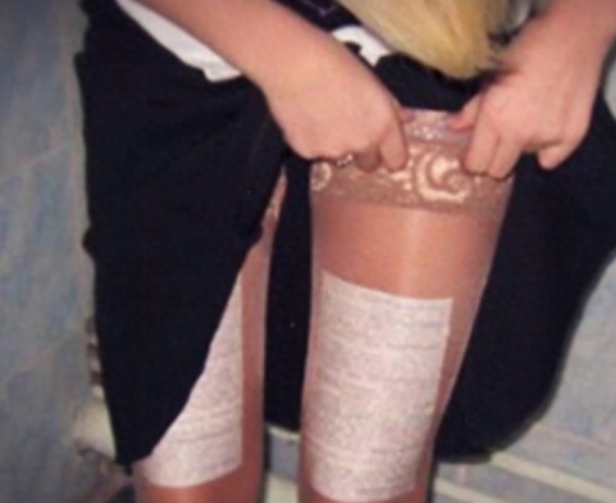 把小抄塞进袜裤中