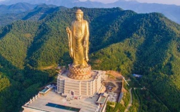 中原大佛是世界上最高的佛像,坐落于河南省平顶山市鲁山县尧山佛泉寺,是目前已知道世界上最高的佛教造像,中原大佛总高度达到208米,身体高度达到108米,仅仅莲花座高度就达到20米,金刚座高度达到25米,须弥座的高度为55米,从这样的尺寸当中可以看到中原大佛的壮观之处,中原大佛整体铸造使用了3300吨铜材料,108公斤黄金,特殊的钢材料使用了15000多吨,中原大佛的表面面积大概11300平方米,每一个面积都是通过焊接所焊成的,使用了13300块铜板焊成。