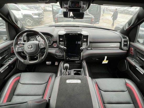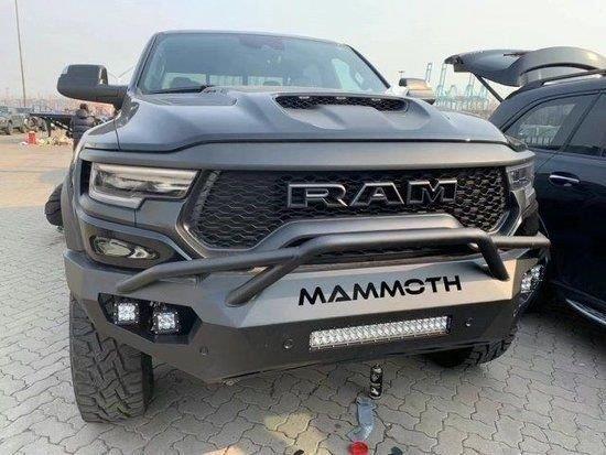 全新23款道奇公羊霸王龙除了强大的动力外,性能版的Ram1500TRX和越野性同样是一流的,车辆从地板的间隙达到了28cm,接角是30.2,出发角是23.5,通过角是21.9,涉水高是81.28cm,可以对应大部分区间,另外,新车搭载了来自Bilstein的自适应减震器,前后轮的行程达到了33/36cm。