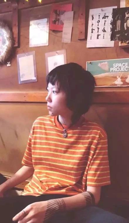 穿着低调的休闲服,不太引人注目,但是看得出她心情不错,全程尬笑显羞涩。一头乌黑的小短发,个性的眼睛也被遮挡了起来。嘴角弯弯笑容浅浅,要说还是她的下巴纹身霸气!
