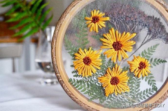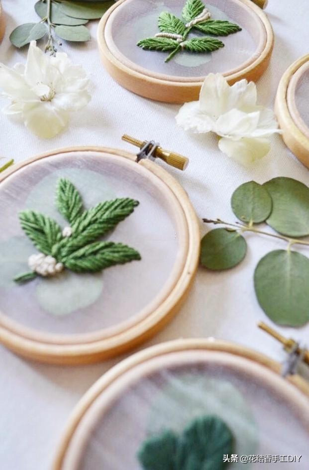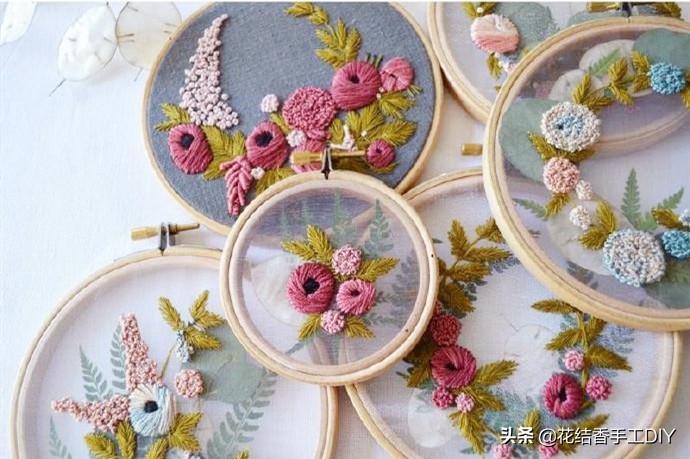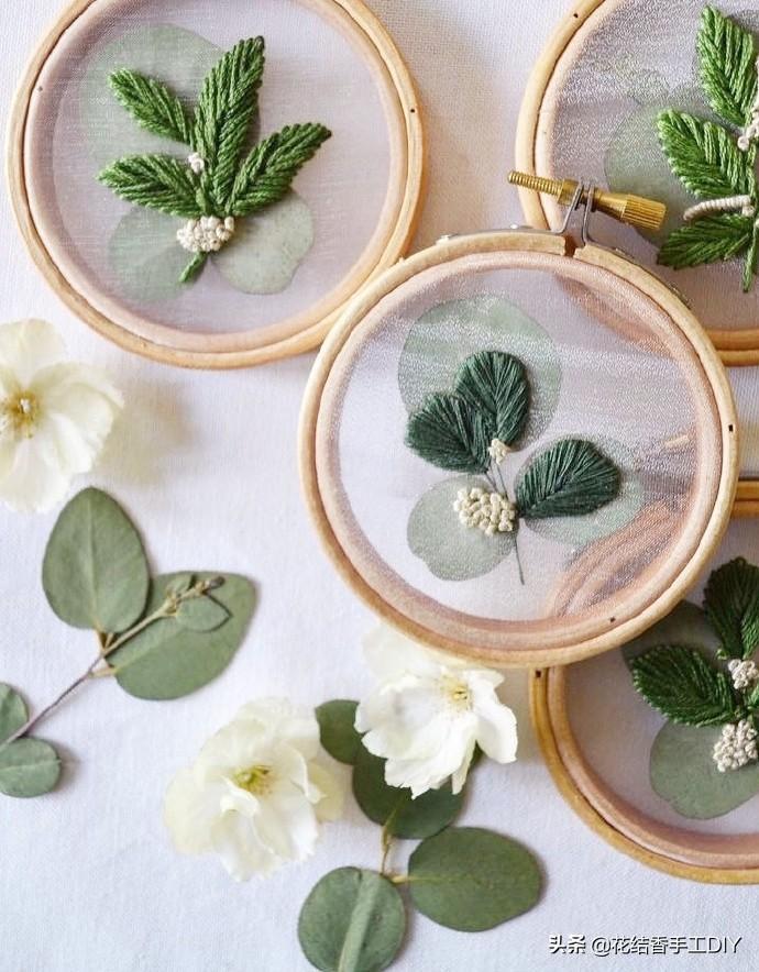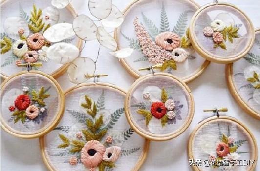 在纱料上绣出来的作品,具有别样的清新美感,因此近几年大受人们的欢迎。