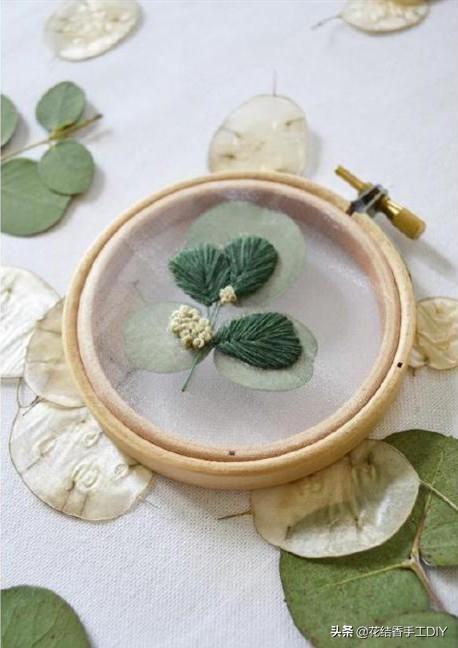 以前总是觉得有花有草才美丽,其实单独刺绣叶片,也是别有清幽韵味的。