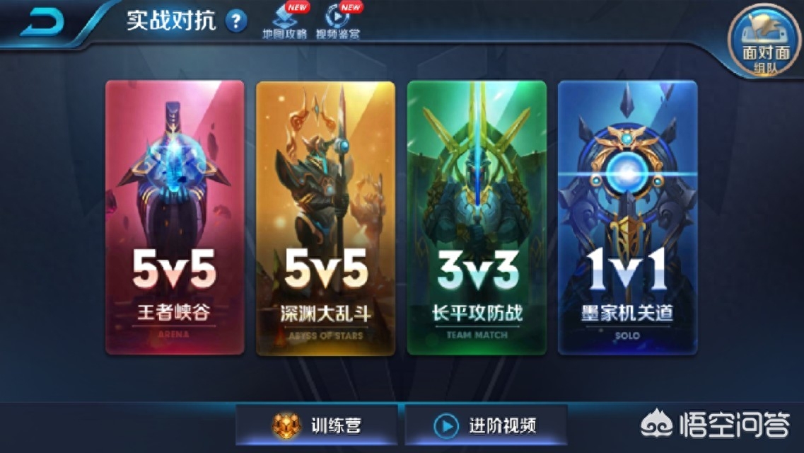 王者荣耀中的地图一共有四个,分别是5v5的王者峡谷,3v3的长平攻防战、深渊大乱斗和1v1所采用的墨家机关道,除此之外,还有最新上线的五军对决的地图。