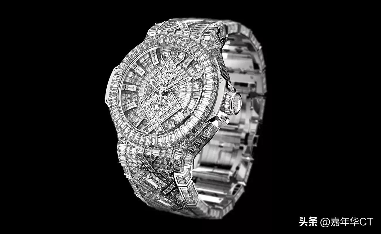 是有史以来最昂贵的时计之一,它由坚固的表带组成,该表带经过抛光和镶嵌钻石的链环。小巧的手动上链发条位于白金和钻石手链上。时钟的表面覆盖有蓝宝石玻璃,拥有576颗钻石和11颗on玛瑙宝石。