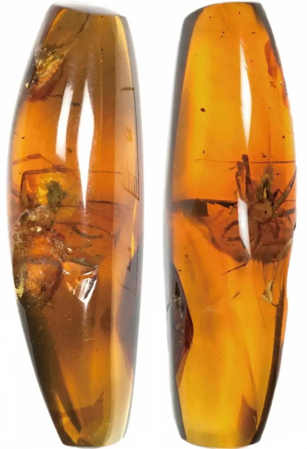 ▲缅甸克钦琥珀中发现的扁巨蛛(中国科学院动物研究所供图)