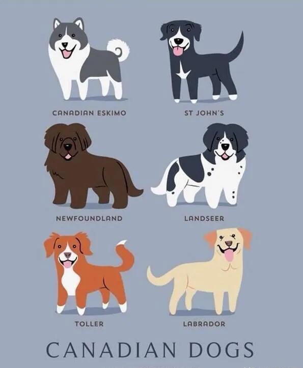 爱斯基摩犬、圣劳伦斯犬、纽芬兰犬、兰西尔犬、托乐猎犬、拉布拉多犬