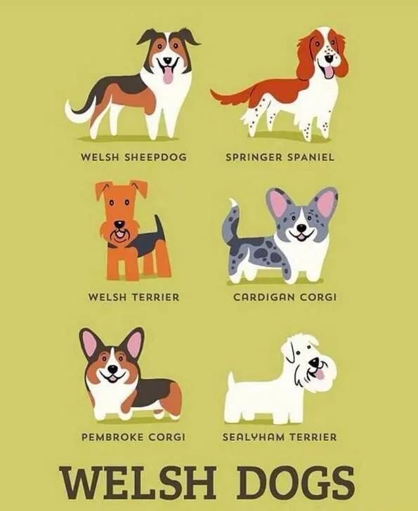 牧羊犬、史宾格犬、威尔士梗犬、卡地甘柯基犬、彭布罗克柯基犬、锡利哈姆梗犬。