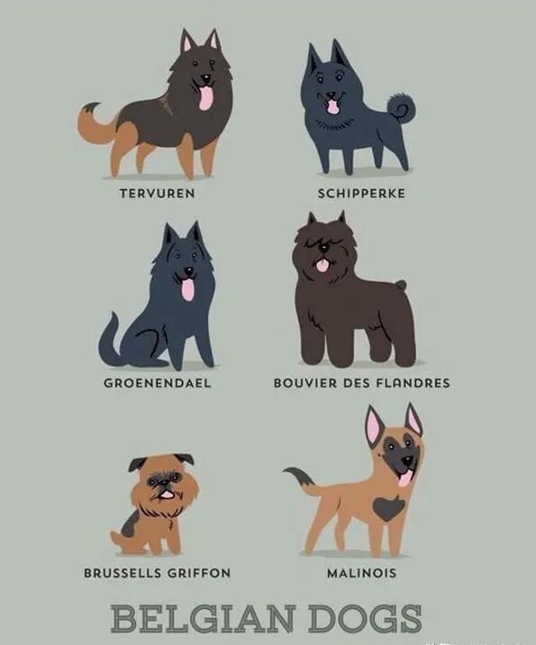 特弗伦犬、舒柏奇犬、格鲁安达犬、法兰德斯牧羊犬、布鲁塞尔格里芬犬、玛伦牧羊犬