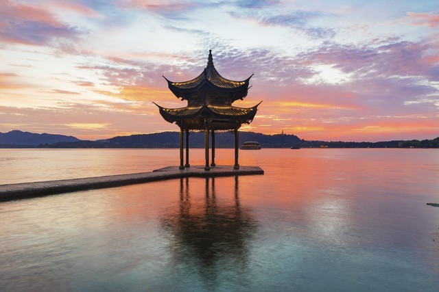 第二站是美丽的西湖,这是中国最著名的湖泊之一。西湖水域辽阔,湖泊周围的山峦起伏,景色十分宜人,被称为“人间天堂”。