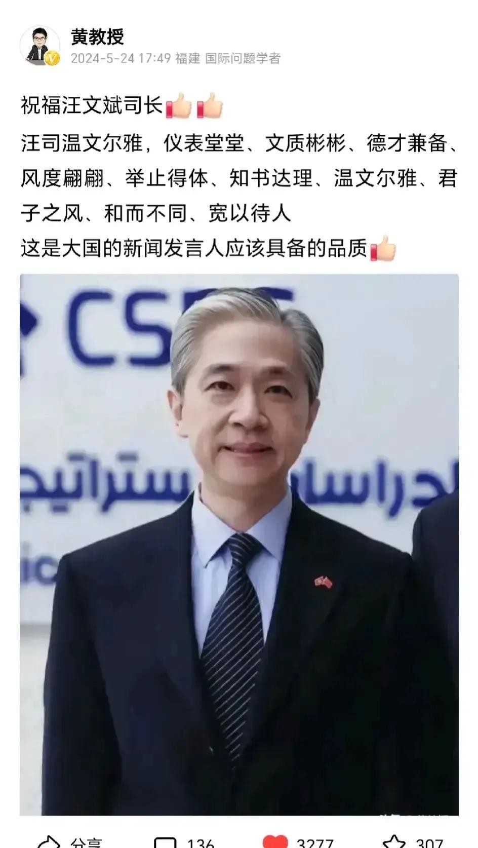 对于这次汪文斌履新柬埔寨的消息,网友们也是热议纷纷。有人认为这是对他的肯定和提拔,也有人期待他在新的工作岗位上能够取得更大的成就。无论如何,我们都应该为汪文斌送上最真挚的祝福,期待他在新的工作岗位上继续为中国外交事业贡献自己的力量。