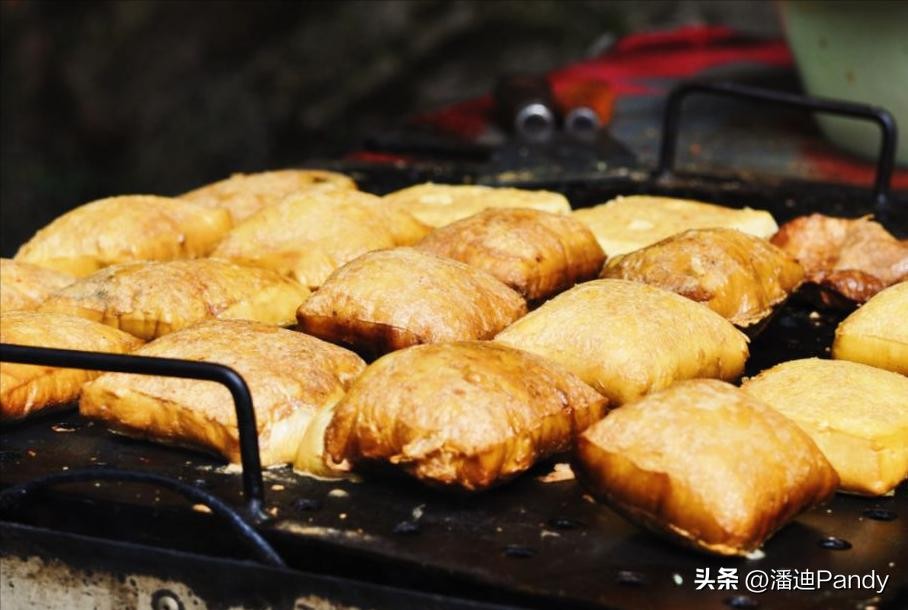 贵州的豆制品很多,恋爱豆腐果其实就是烤豆腐果,它将烤豆腐做成肉夹馍一样的存在。豆腐在铁板上烤得鼓气时,需要用钢片或者竹片从中间把它剖开,然后塞入各种调料,还有折耳根。