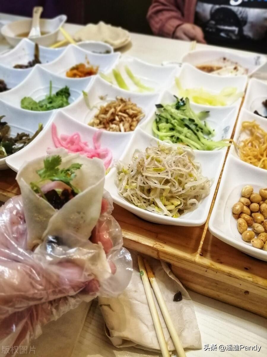 丝娃娃面皮薄薄如纸,却有—只手掌那么大。再卷入萝卜丝、折耳根、海带丝、炸黄豆、脆哨、糊辣椒等。当地人吃时,少不了加入酸酸辣辣的蘸水。这蘸水就是丝娃娃的灵魂了。