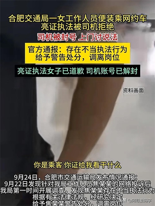据官方通报,焦某某并非合肥市交通运输综合行政执法支队的工作人员,而是合肥市交通运输局的一名普通员工,理论上并无执法权。那么,她在明知自己无权执法的情况下,为何还要亮出证件?这背后的原因令人深思。有分析认为,她可能是想利用公众对执法证件的敬畏心理,达到自己的不正当目的。然而,这种滥用职权的行为不仅损害了公职人员的形象,更对法治社会造成了极大的负面影响。