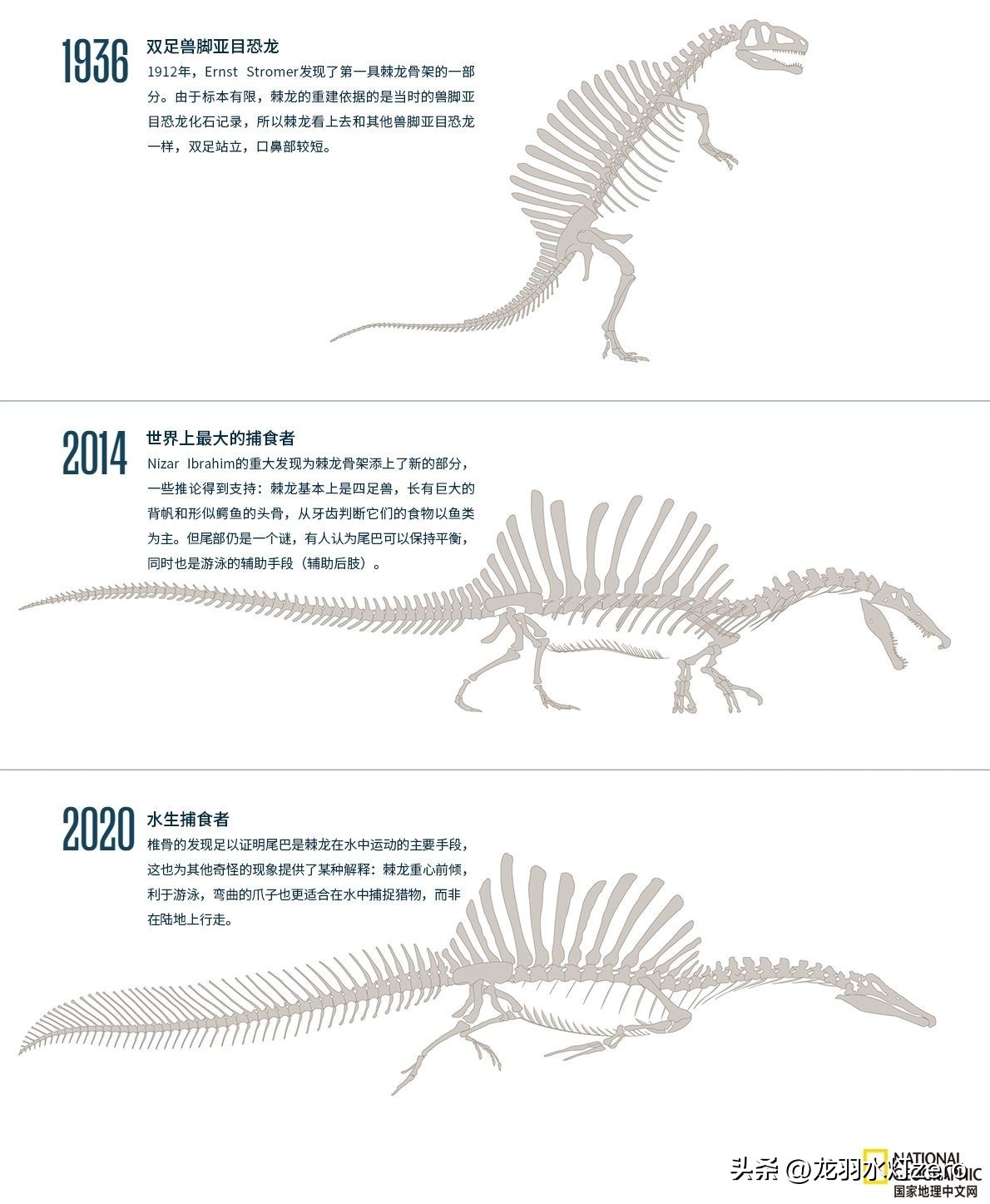 曾经,在电影银幕上,棘龙大战霸王龙还是风靡一时;可现在,随着更多化石的出土,棘龙水栖的证据已经确凿,早已不是霸王龙,乃至其他非洲大型肉食动物的对手了。现在遗留下的,还能打败霸王龙的,只剩下索贝克了。