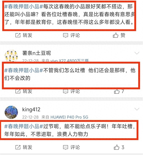 比起歌舞,春晚最令人期待的节目就是小品类节目。只是这些年,春晚小品的质量有点大不如前,笑点尴尬,槽点满满,让观众感叹一年一度的春晚越来越“没那味”了。