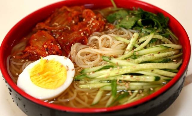 朝鲜族冷面一般用小麦粉、荞麦粉和甘薯淀粉混合制成面条,以牛骨煮汤,食用时汤中加冰块、辣椒、酱牛肉片、苹果片及其它调料。冷面是朝鲜族人夏季最喜欢的主食之一,延边的金达莱冷面是个代表。