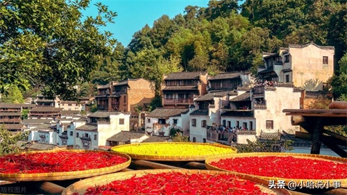 7. 婺源篁岭,一个充满历史韵味的古村落,凭借其壮丽的梯田景色和古老的建筑风格,已然成为富有深厚文化气息的旅游胜地。在这里,游客可以领略到独特的自然风光和文化遗产,感受岁月沉淀下的历史印记。