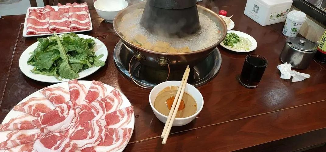 北京人都吃的是铜锅涮羊肉,大部分锅底是清汤的,里面放点葱、枸杞、大枣,看似寡淡,实则不然。