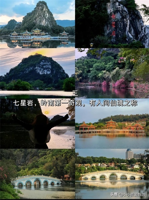 ③七星岩——七星岩风景区是一处以石灰岩溶蚀地貌为主的自然景观,由七座突兀的石灰岩峰群组成,因形似北斗七星而得名。