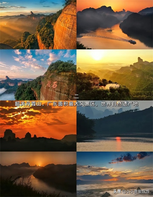②韶关丹霞山——韶关市的丹霞山,以其独特的红色岩石地貌和丰富的文化遗产而闻名,是中国著名的红色砂岩地貌代表之一。这里的山峰因长期风化剥离和水流侵蚀,形成了奇峰突起、形态各异的地貌景观,被誉为“中国丹霞地貌博物馆”。