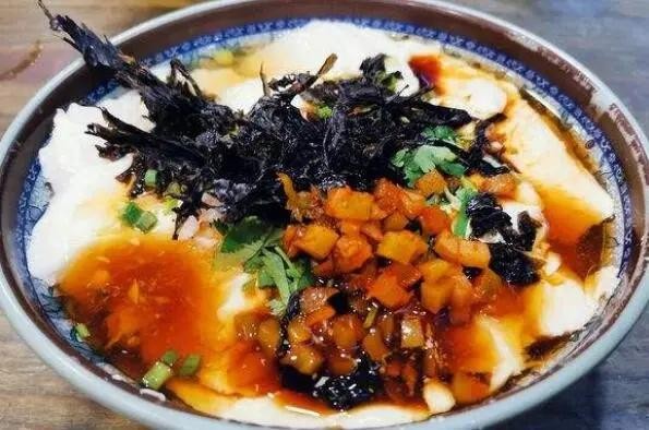 这道小吃在南京很有年头了,是南京人的热门早餐。白白嫩嫩的豆腐脑中加入虾米、榨菜、木耳、葱花、辣油、香油等十余种佐料,口感丰富得很。入口即化,各种调料混合在一起,瞬间唤醒你的大脑,开启活力满满的一天。