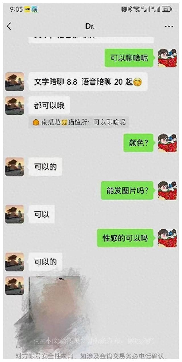 我与帖子中的发布者进行了私聊,她要求我加她的微信,以便进行更具体的聊天。同时,她还提供了一张自己的照片和不同类型的服务供我选择。这个时候,我的调查目的基本达到,活动经费也所剩无几,于是我决定及时退出,以免引起不必要的关注。