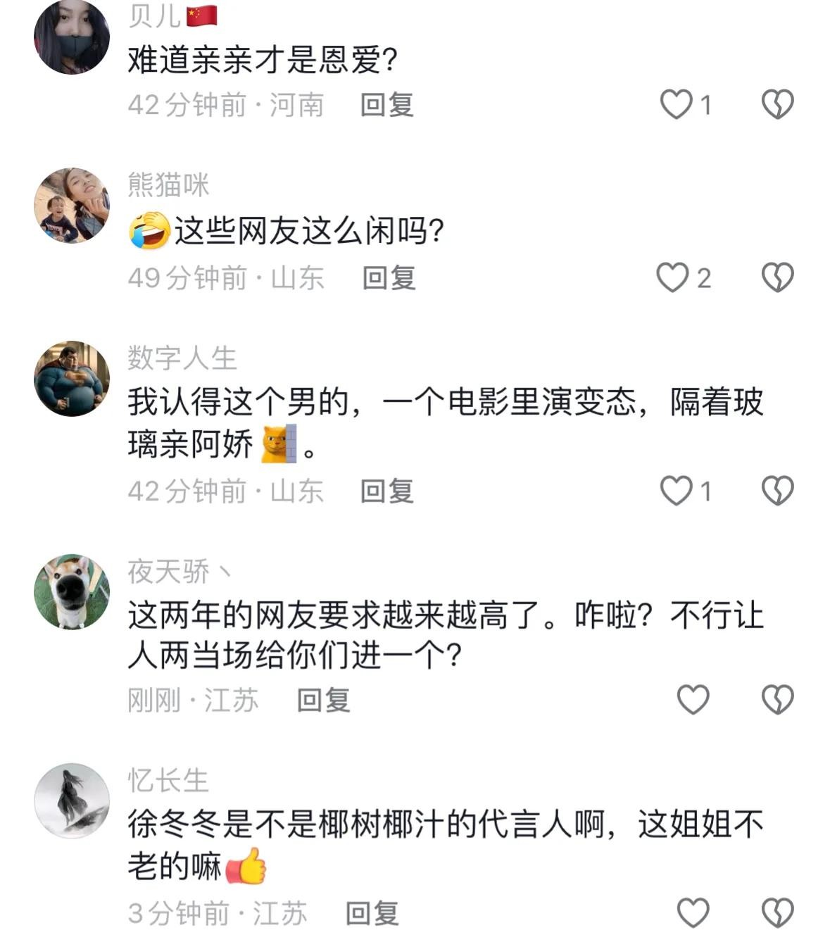 对于网友们关于缺乏亲密互动的质疑,徐冬冬明确表示,他们更多地将视频拍摄用作与观众交流,分享生活、旅行和美食等方面的感受。镜头前的不亲密并不能代表私下不恩爱。