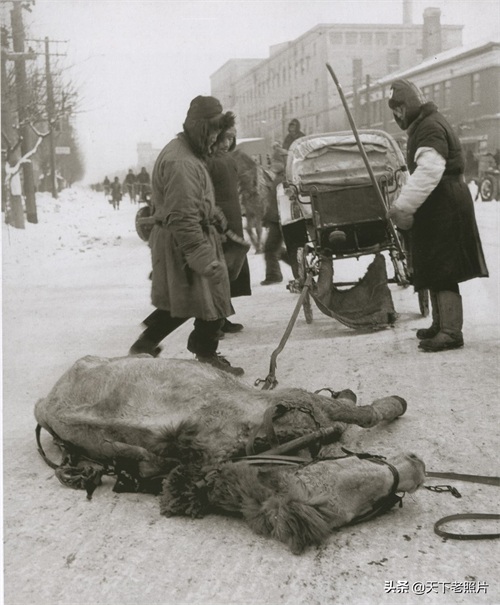 一位赶车人将累死的骡子丢弃在沈阳的主干道上。