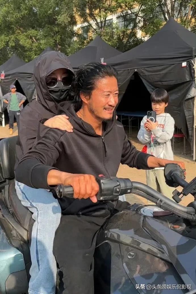 吴京骑着黑色摩托车载着谢楠,后面的谢楠包裹的严严实实的生怕晒黑,一旁的儿子贴心的帮他们拍照。他的俩个儿子都长得非常帅气好看。