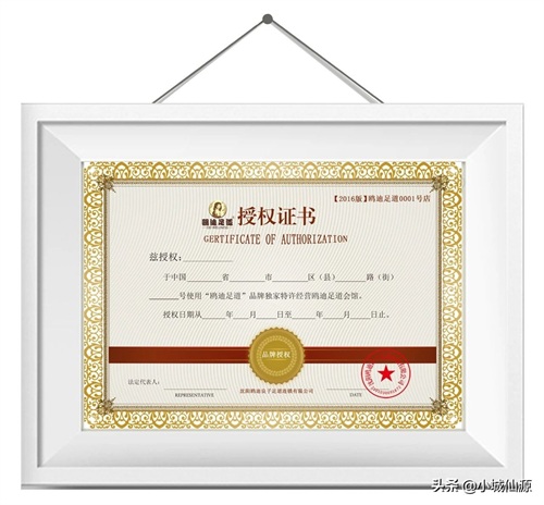 鸥迪足道授权证书