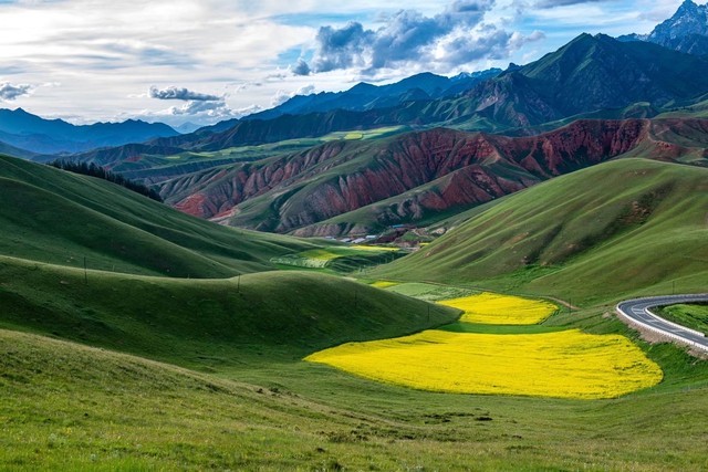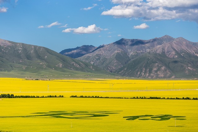 10. 门源油菜花海:位于青海省黄南藏族自治州,是一片绚丽多彩的油菜花田。每年的春季,油菜花盛开,形成了一片金黄色的花海,令人陶醉。