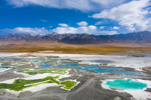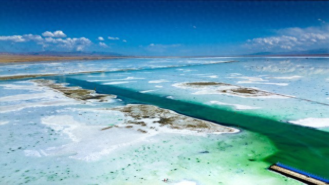 7. 大柴旦翡翠湖:是一片美丽的高原湖泊。湖水呈现出翡翠绿色,周围有雪山和草原,景色壮丽。