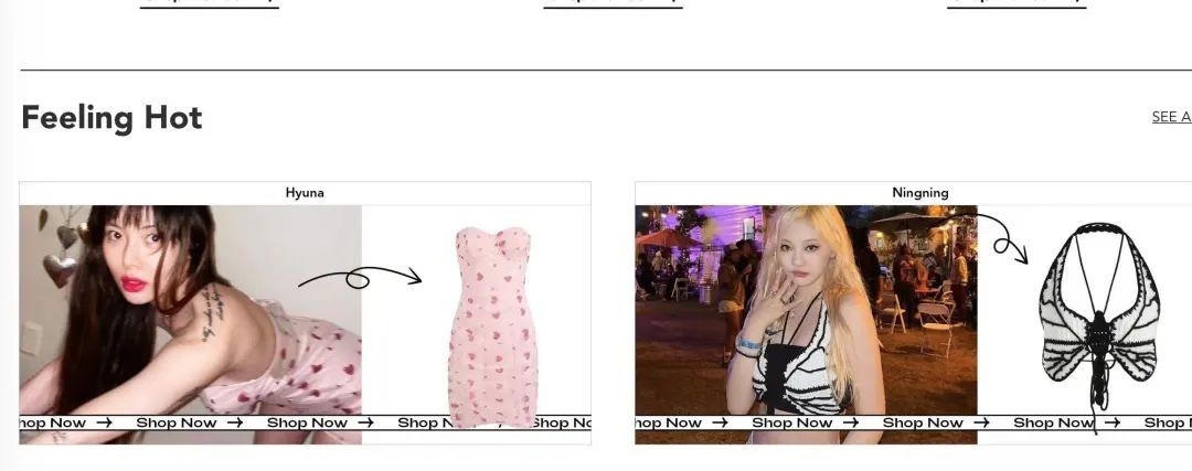 Cider的网站整体风格偏ins,大多采用了简约的设计,导航栏几乎全是关于产品的分类,可以根据场合、风格、心情等来选择浏览相关的服装页面,可以让用户可以缩小寻找的范围,一眼找到他们想要寻找的目标。且几乎在任何页面都可以看到,相关的服装折扣,这无疑是吸引用户下单的好方法。