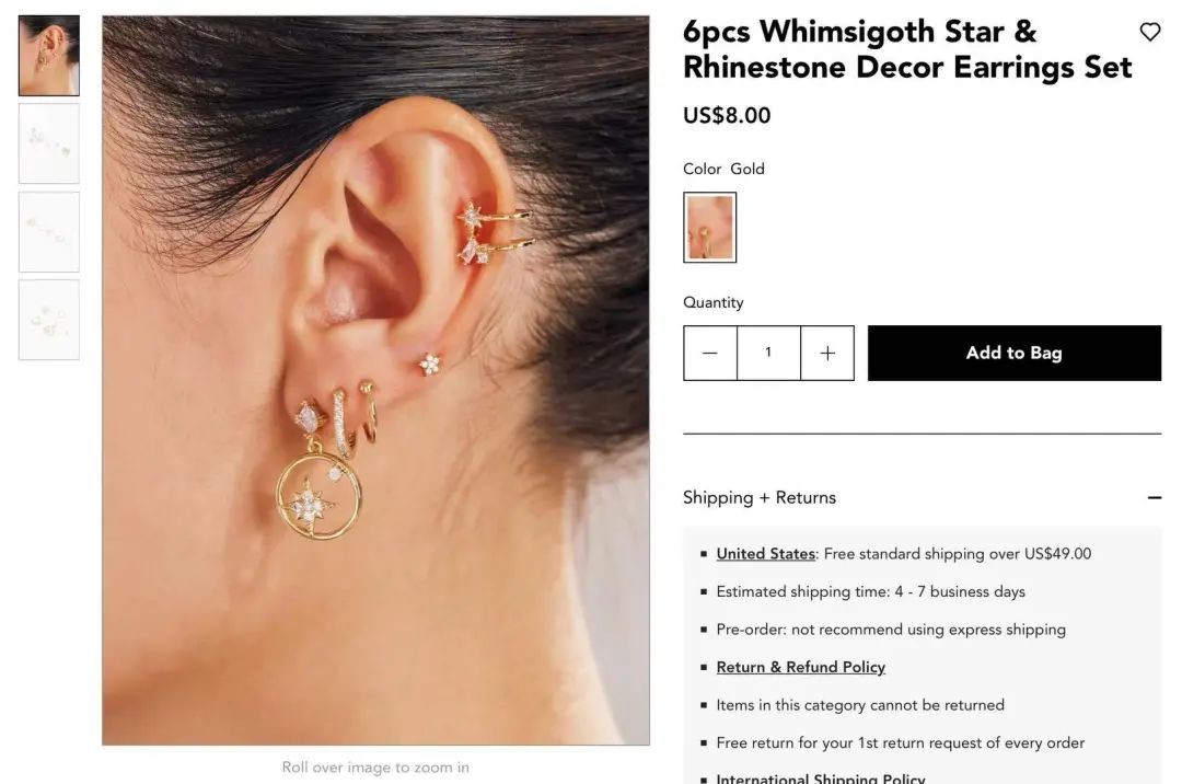服装类产品的退货率一直居高不下,约为30%至50%。部分卖家过分美化产品的颜色、材质、尺寸的适用人群乃至款式。这会让用户拉高期待值,对产品本身抱有超过产品本身的期望,往往这样夸大的产品描述会导致较高的退货率。不少卖家困扰服装在现实与虚拟之间的差异。有关服装类产品的贴身度、质地和顺垂感都很难较为直观得传递给受众,这颗退货换货的“定时炸弹”在产品售出前就已埋下,也就使得卖家们不得不采取额外措施避免这一结果。