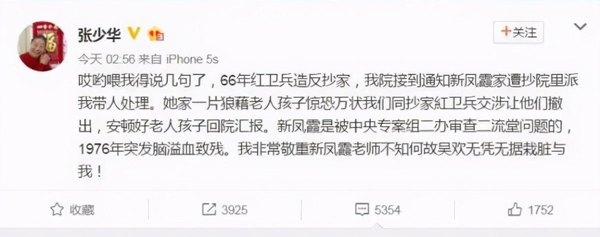 而这一切,都是吴霜亲眼所见。并直指张少华当年是个非常激烈极端的造反派。